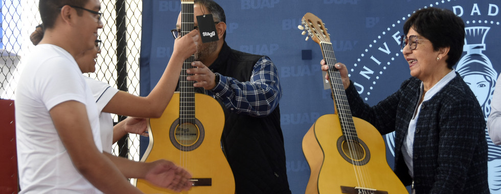 Asimismo, hizo entrega simbólica de 120 equipos de cómputo, 25 guitarras y 24 balones de básquetbol que servirán para equipar a las facultades de Medicina, Enfermería y Estomatología, además de facilitar las actividades deportivas, recreativas y culturales como las que realiza la Rondalla de la Salud.